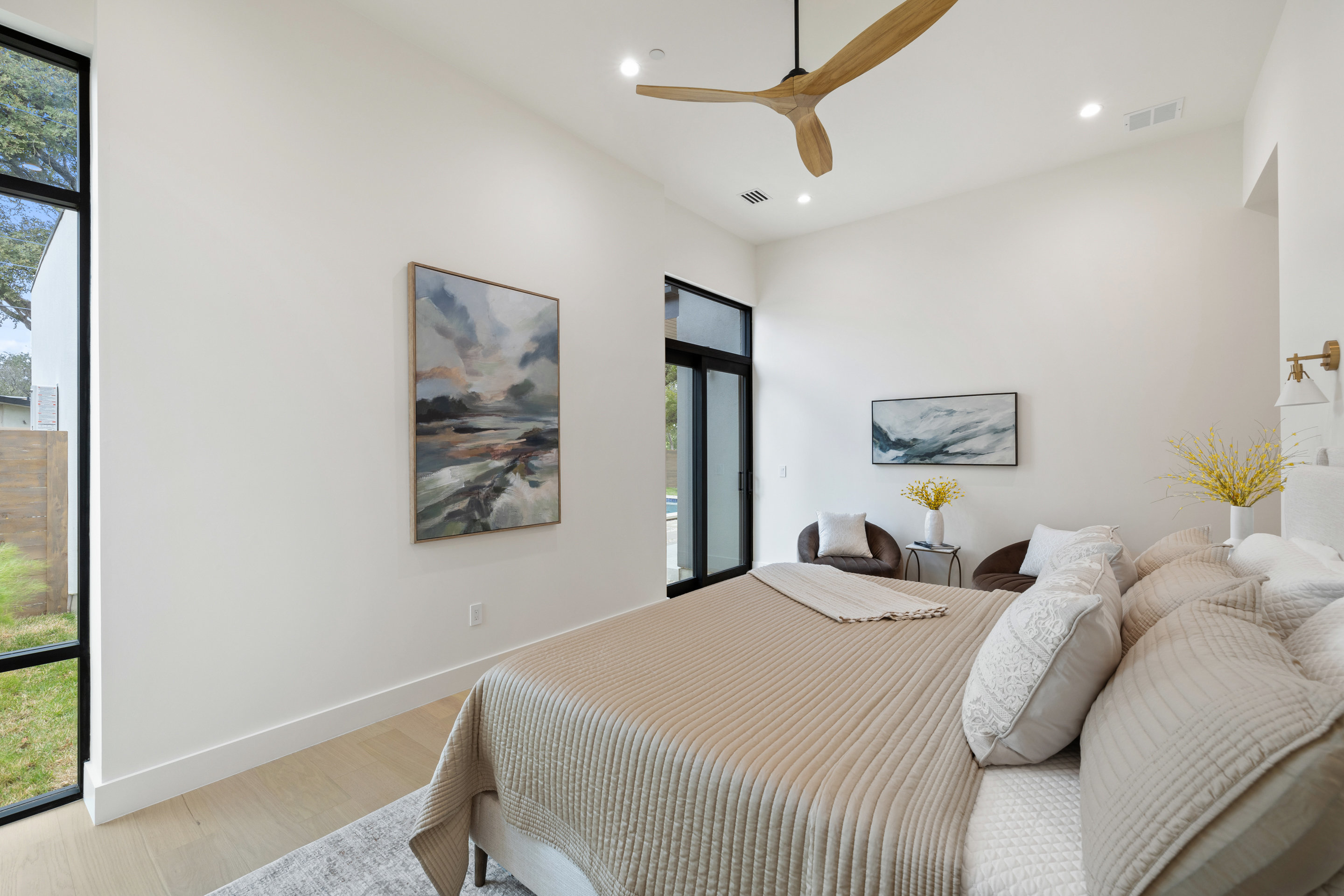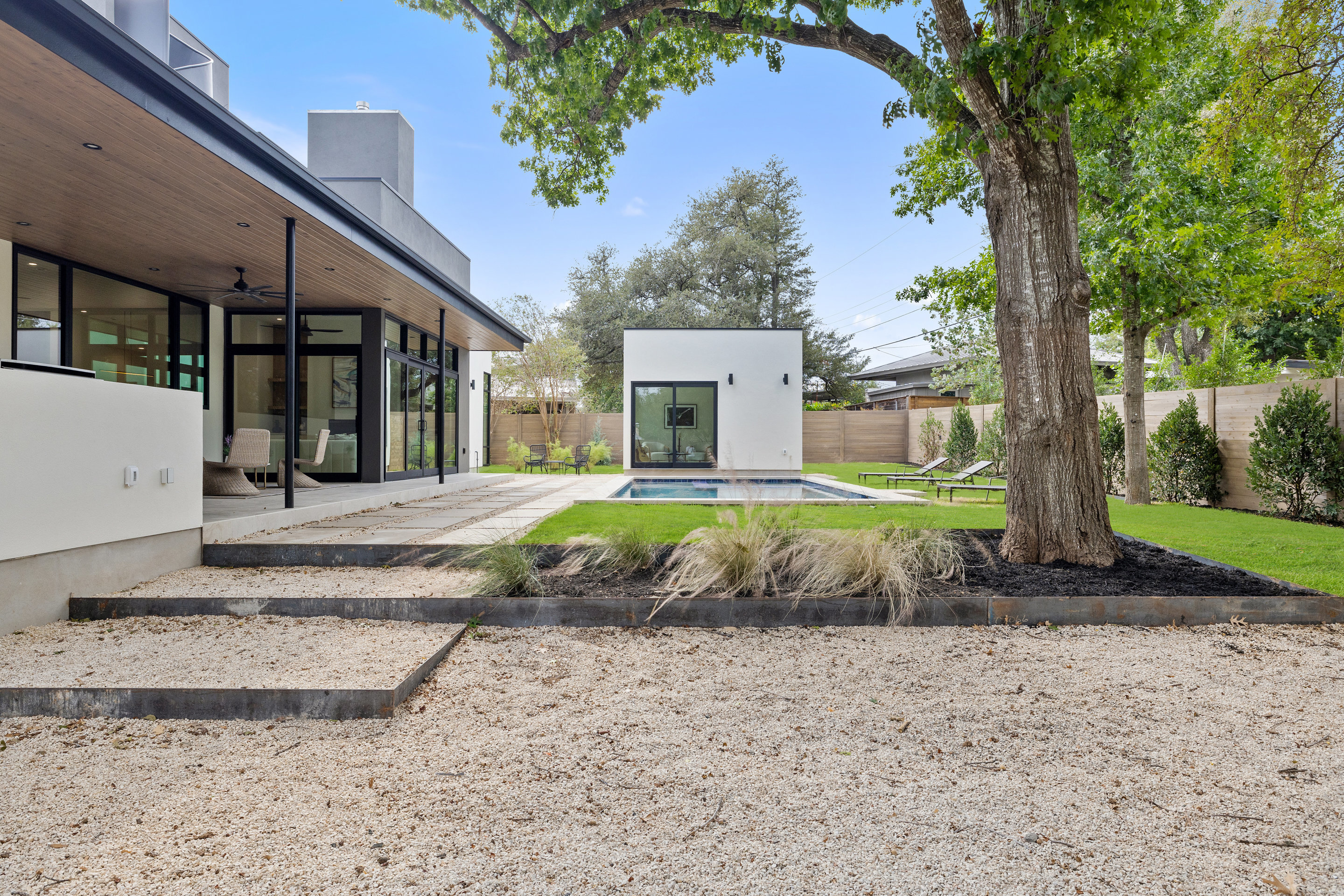 Modern luxury newer construction (2024) in Westlake's most convenient and walkable neighborhood - “Westwood”. Walking/biking distance to exemplary Eanes ISD public schools and many nearby private schools, shopping, coffee shops and restaurants, yet just a 5-10 minute drive to DT Austin, Lady Bird Lake, SoCo, etc. Warm transitional style features and finishes throughout, every space has been crafted to maximize comfort, luxury, and privacy. Featuring 4600 sq. ft. with 5 bedrooms including the primary suite, guest suite + study + bar and abundant storage on the main level. 3 additional bedrooms all with en-suite baths and a den/media room upstairs and a small office/homework space with custom built-ins. Tall ceilings and great flow throughout. The oversized kitchen features custom White Oak cabinetry; Thermador professional appliances and a view to the pool, spa and backyard space. The kitchen also features an impressive large island with seating area and is connected to a functional butler pantry including extra storage and prep space, additional fridge and a 2nd dishwasher. Accessible from both the main family room and the butler pantry, the generous main level covered patio features a BBQ area; additional 2nd floor deck and 3rd floor rooftop terrace overlooking DT Austin and the city lights. Separate casita/guest house adjacent to pool includes bathroom and could be a great art, music, reading, or hobby room. Custom Audio/Visual/Security and Camera package has been installed and is included with the home. Westwood features one of Travis County’s lowest tax rates at 1.46% which is lower than nearby Rollingwood and West Lake Hills and considerably lower than nearby City of Austin properties.