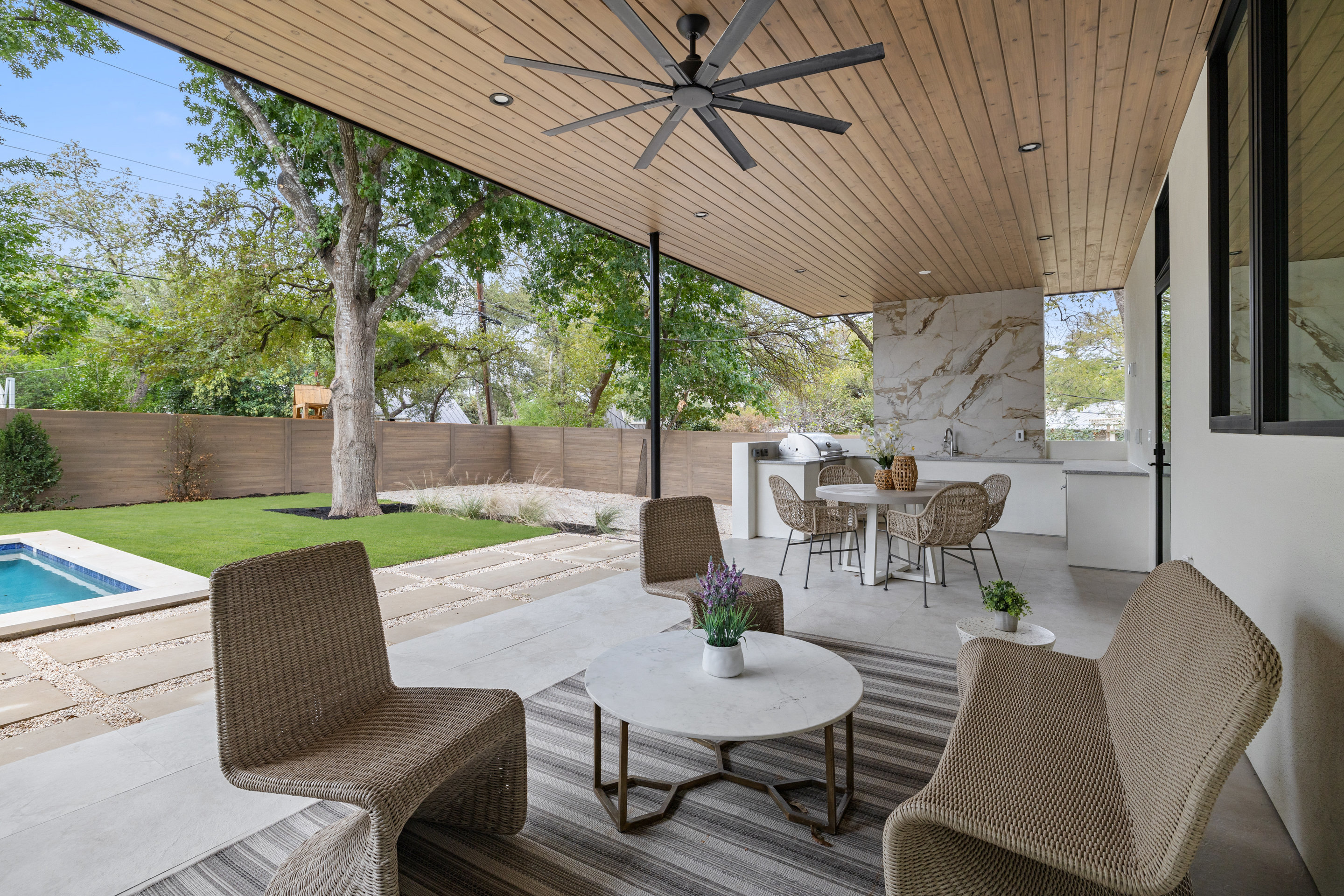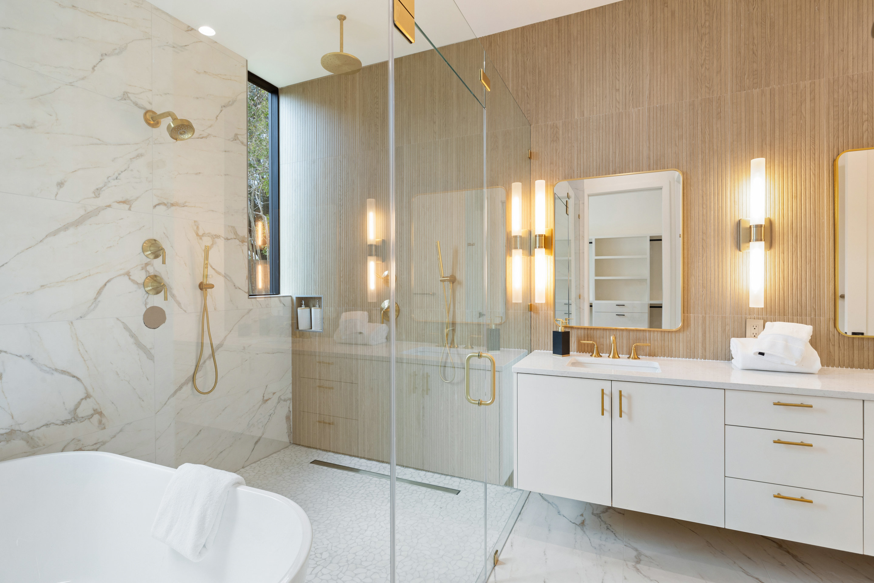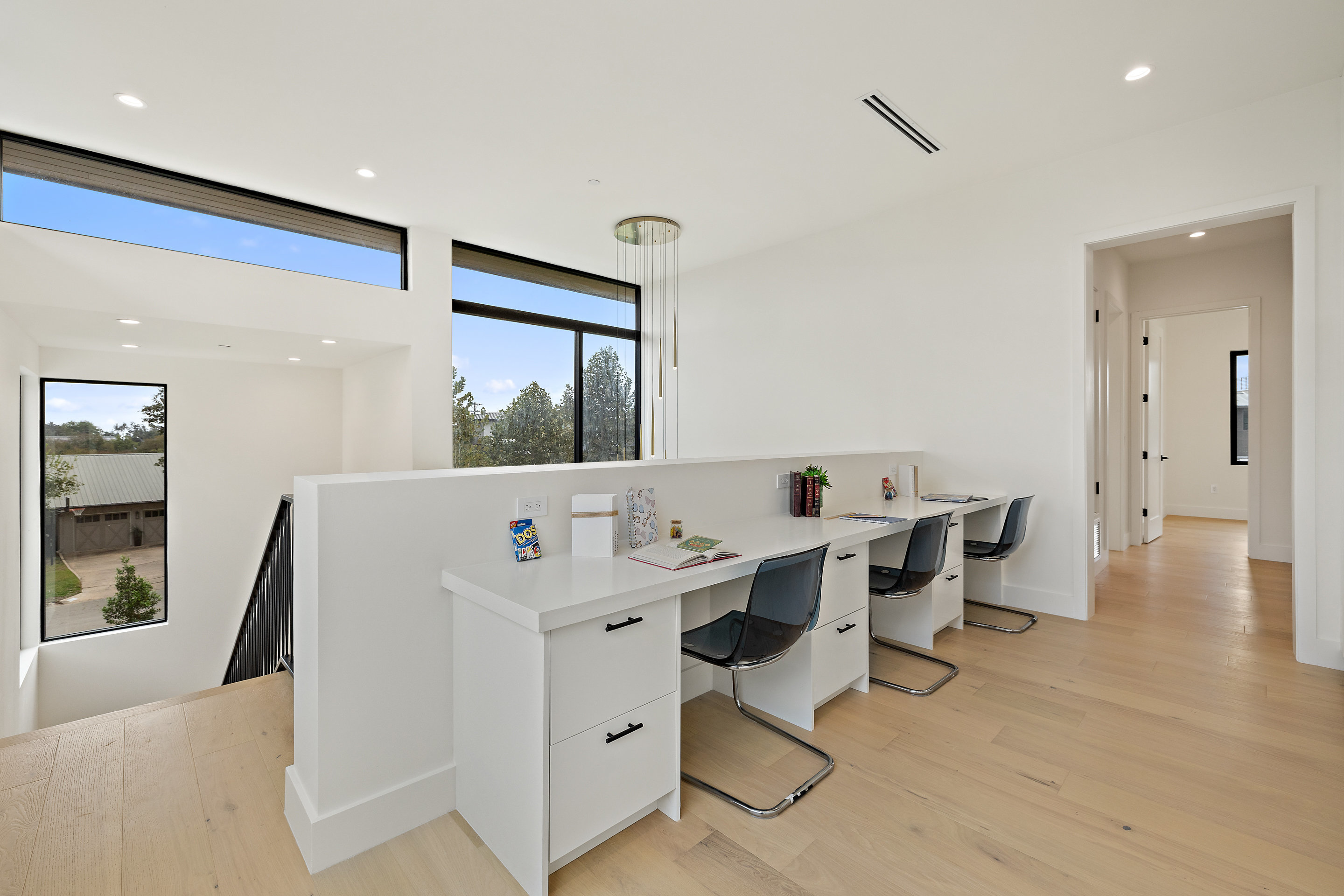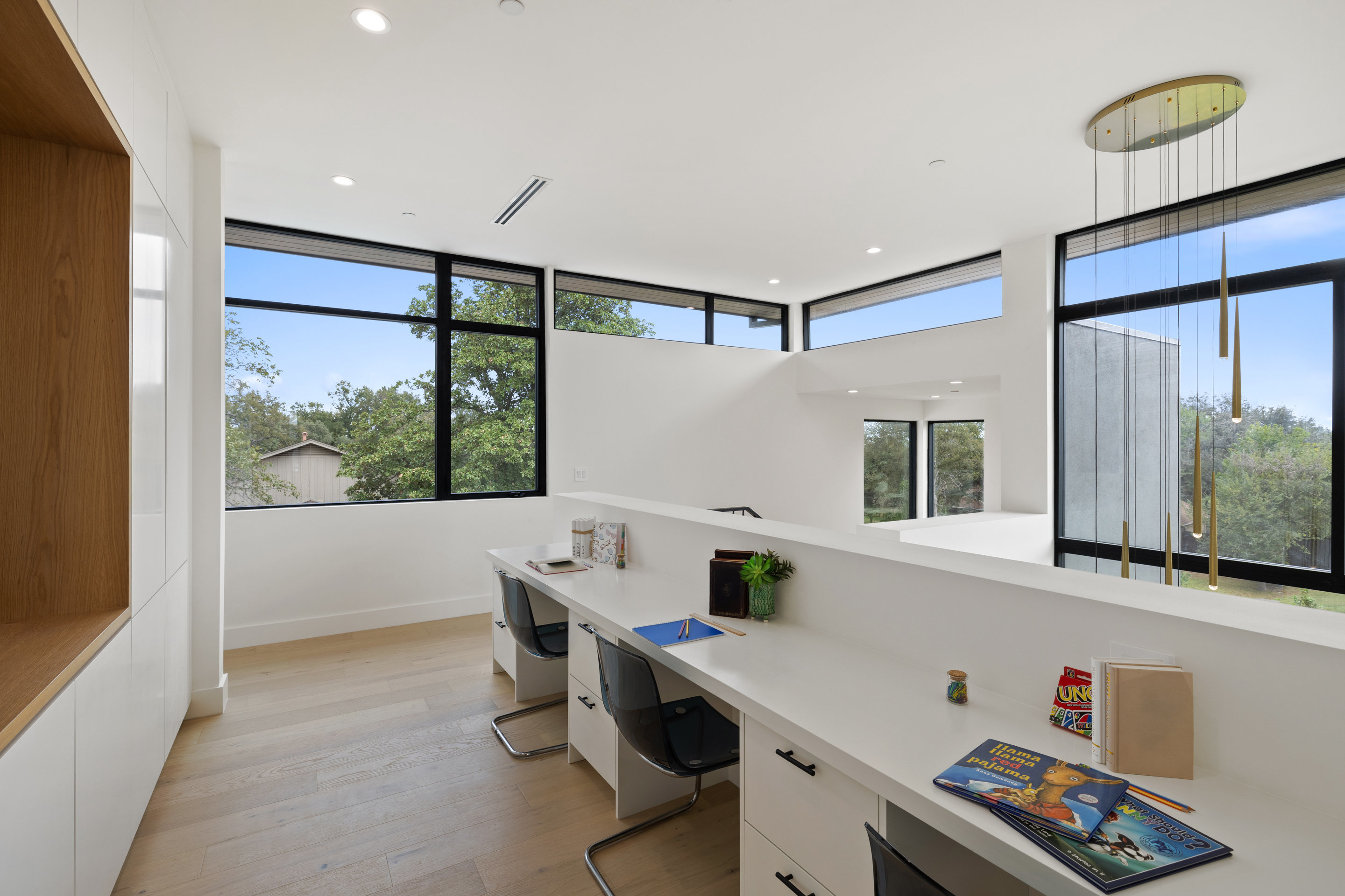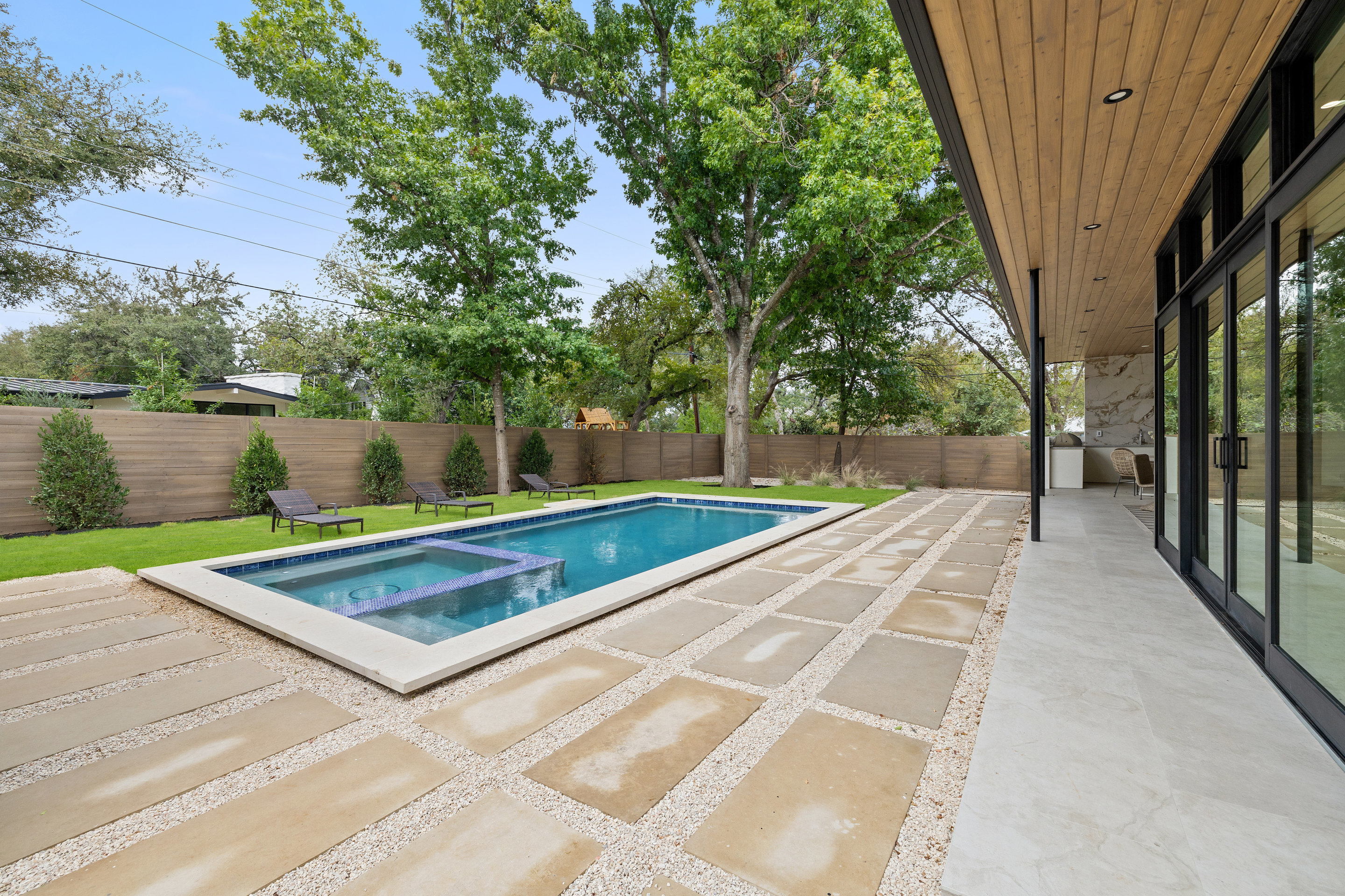 Modern luxury newer construction (2024) in Westlake's most convenient and walkable neighborhood - “Westwood”. Walking/biking distance to exemplary Eanes ISD public schools and many nearby private schools, shopping, coffee shops and restaurants, yet just a 5-10 minute drive to DT Austin, Lady Bird Lake, SoCo, etc. Warm transitional style features and finishes throughout, every space has been crafted to maximize comfort, luxury, and privacy. Featuring 4600 sq. ft. with 5 bedrooms including the primary suite, guest suite + study + bar and abundant storage on the main level. 3 additional bedrooms all with en-suite baths and a den/media room upstairs and a small office/homework space with custom built-ins. Tall ceilings and great flow throughout. The oversized kitchen features custom White Oak cabinetry; Thermador professional appliances and a view to the pool, spa and backyard space. The kitchen also features an impressive large island with seating area and is connected to a functional butler pantry including extra storage and prep space, additional fridge and a 2nd dishwasher. Accessible from both the main family room and the butler pantry, the generous main level covered patio features a BBQ area; additional 2nd floor deck and 3rd floor rooftop terrace overlooking DT Austin and the city lights. Separate casita/guest house adjacent to pool includes bathroom and could be a great art, music, reading, or hobby room. Custom Audio/Visual/Security and Camera package has been installed and is included with the home. Westwood features one of Travis County’s lowest tax rates at 1.46% which is lower than nearby Rollingwood and West Lake Hills and considerably lower than nearby City of Austin properties.