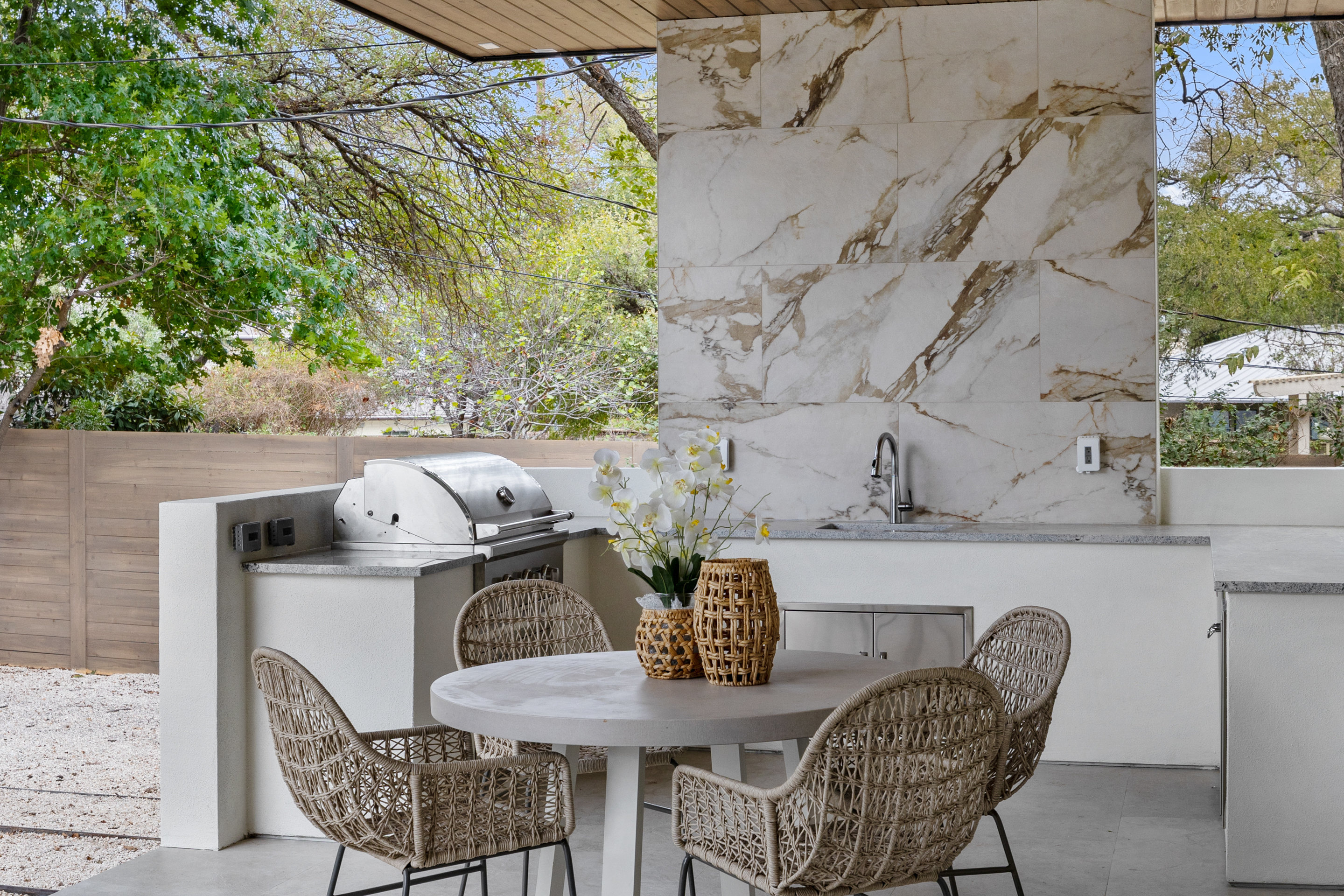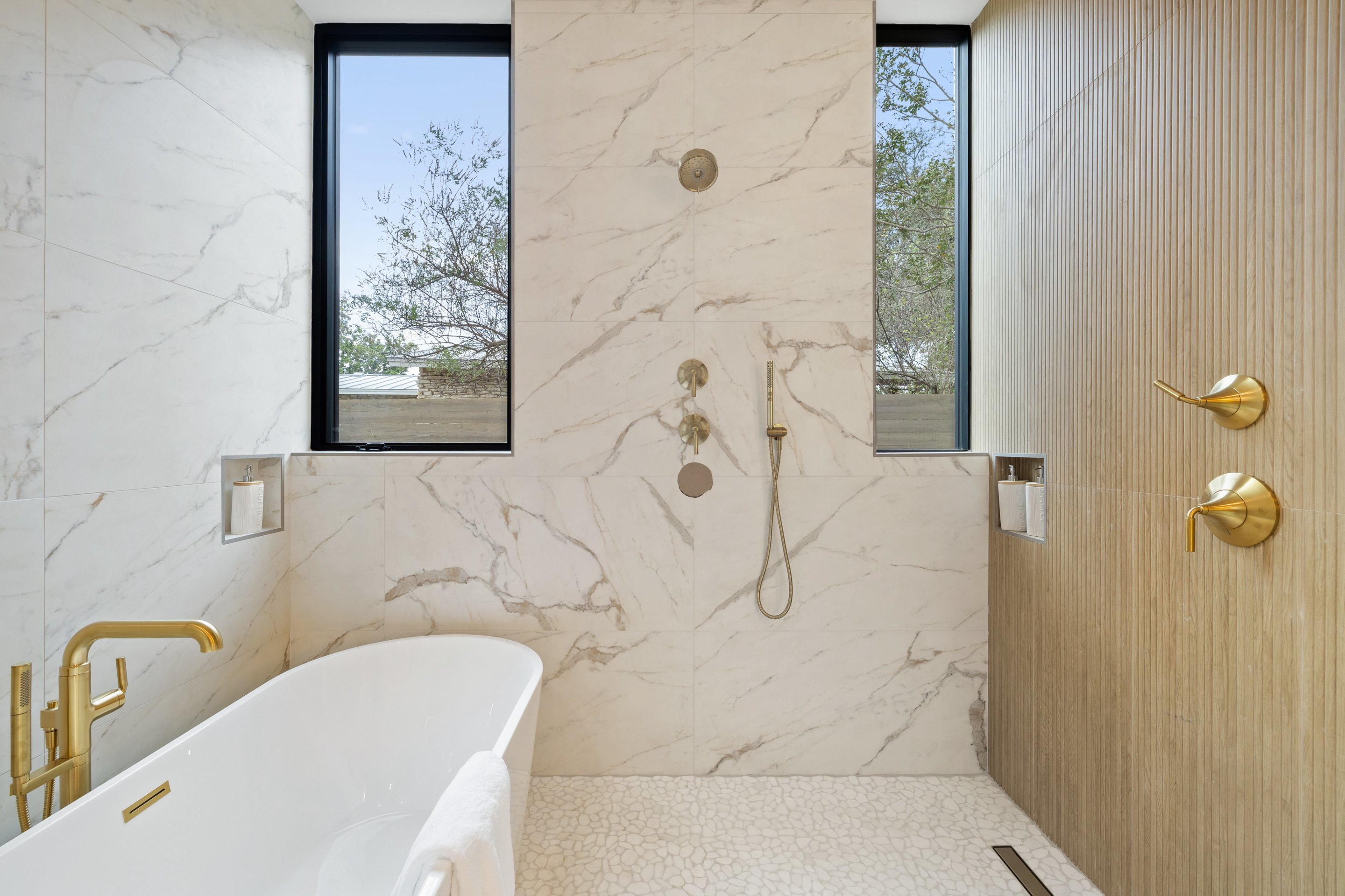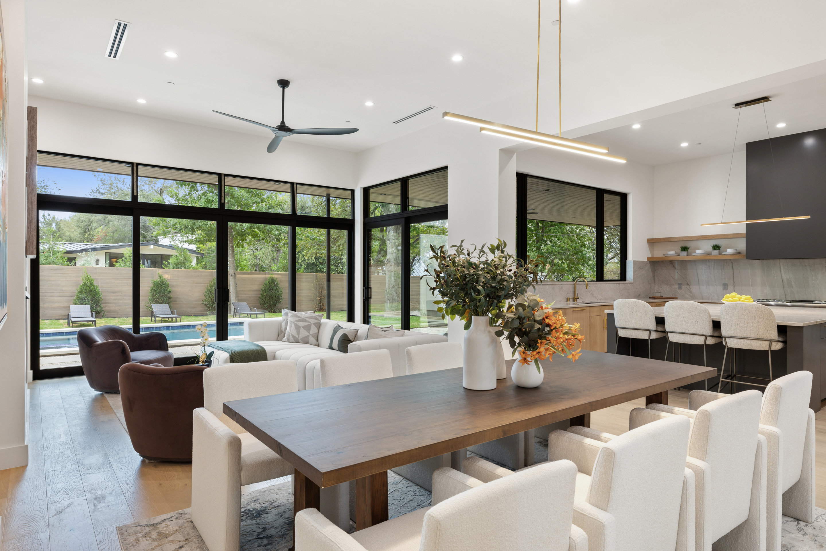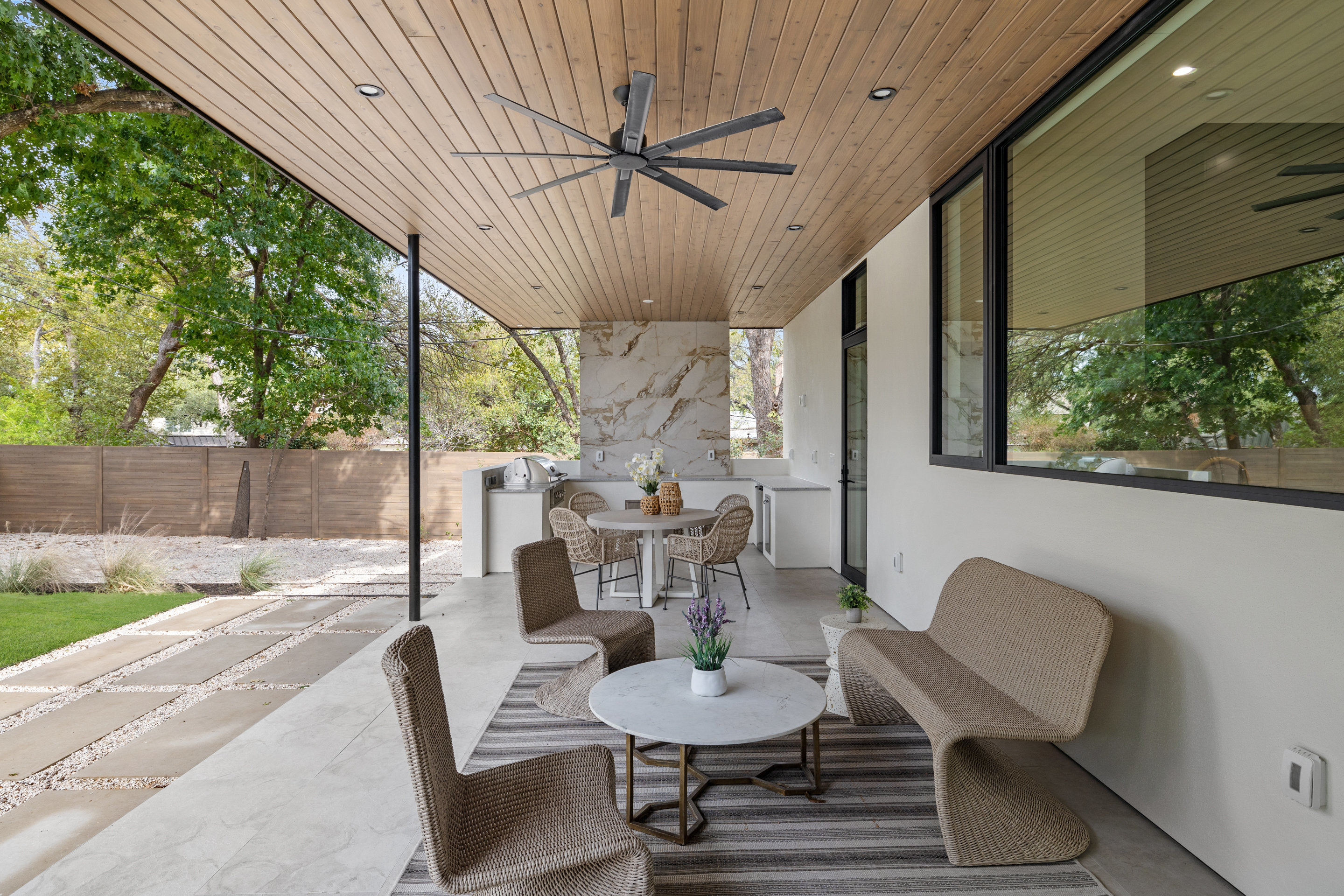 Modern luxury newer construction (2024) in Westlake's most convenient and walkable neighborhood - “Westwood”. Walking/biking distance to exemplary Eanes ISD public schools and many nearby private schools, shopping, coffee shops and restaurants, yet just a 5-10 minute drive to DT Austin, Lady Bird Lake, SoCo, etc. Warm transitional style features and finishes throughout, every space has been crafted to maximize comfort, luxury, and privacy. Featuring 4600 sq. ft. with 5 bedrooms including the primary suite, guest suite + study + bar and abundant storage on the main level. 3 additional bedrooms all with en-suite baths and a den/media room upstairs and a small office/homework space with custom built-ins. Tall ceilings and great flow throughout. The oversized kitchen features custom White Oak cabinetry; Thermador professional appliances and a view to the pool, spa and backyard space. The kitchen also features an impressive large island with seating area and is connected to a functional butler pantry including extra storage and prep space, additional fridge and a 2nd dishwasher. Accessible from both the main family room and the butler pantry, the generous main level covered patio features a BBQ area; additional 2nd floor deck and 3rd floor rooftop terrace overlooking DT Austin and the city lights. Separate casita/guest house adjacent to pool includes bathroom and could be a great art, music, reading, or hobby room. Custom Audio/Visual/Security and Camera package has been installed and is included with the home. Westwood features one of Travis County’s lowest tax rates at 1.46% which is lower than nearby Rollingwood and West Lake Hills and considerably lower than nearby City of Austin properties.